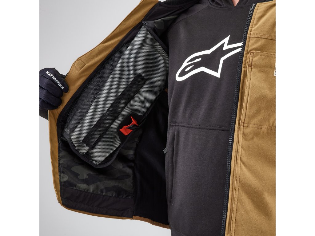 Bavlnená verzia s látkovou podšívkou s kamuflážnym vzorom, držiakom na slnečné okuliare, bočným pútkom na zavesenie rukavíc a skrytým LED displejom pre čistý vzhľad.