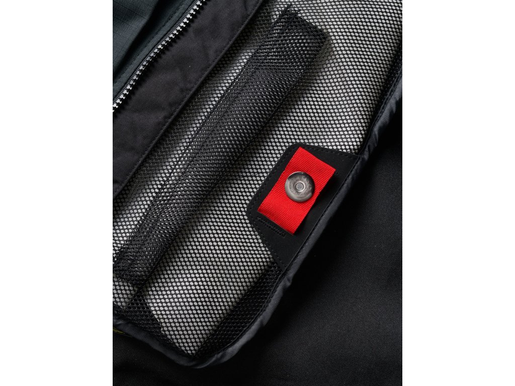- Díky vnitřnímu zakladači v zadní částy vesty je možné vestu dodatečně osadit doplňkovým zádovým protektorem.
