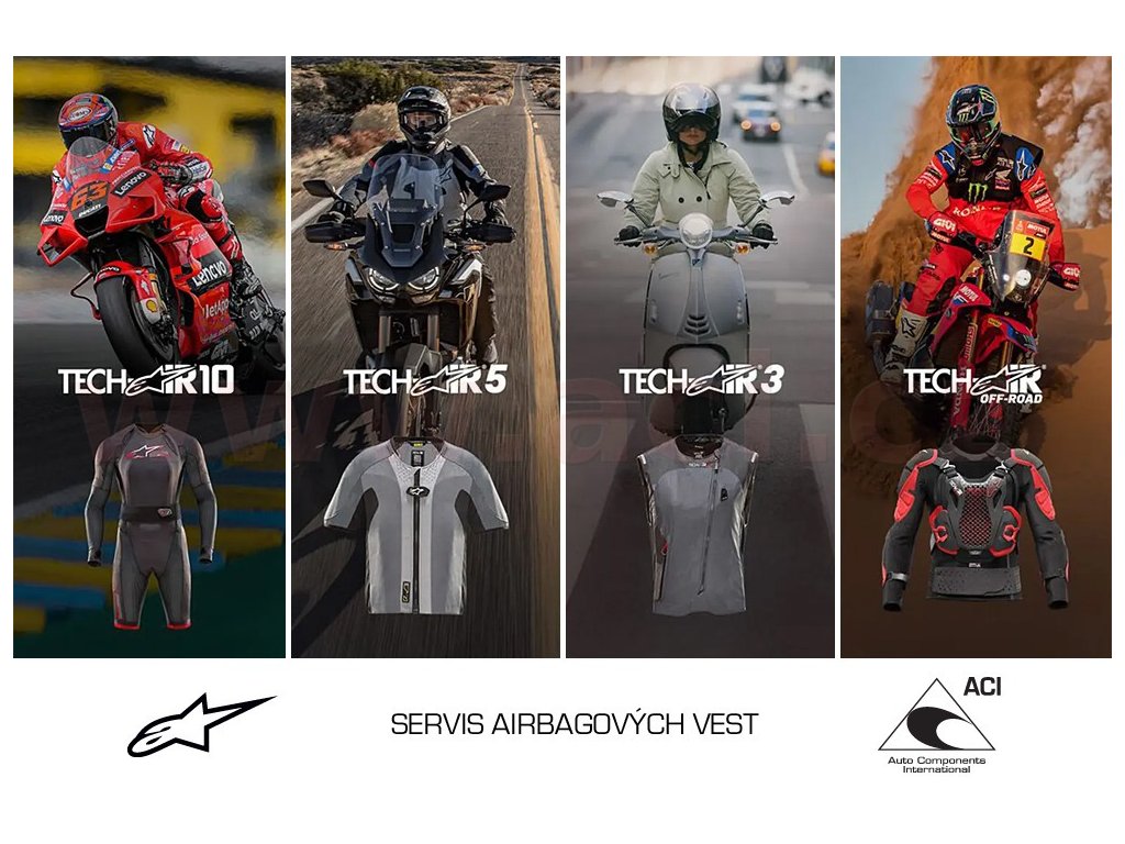- Inštalácia nových nafukovačov, ak existujúci vak prešiel tlakovou skúškou v prípade systémov TECH AIR 3, 5 a 10 (v prípade TECH AIR RACE/STREET sa pri každom pravidelnom servise vždy bez výnimky vymieňa kompletná súprava vaku a nafukovačov).