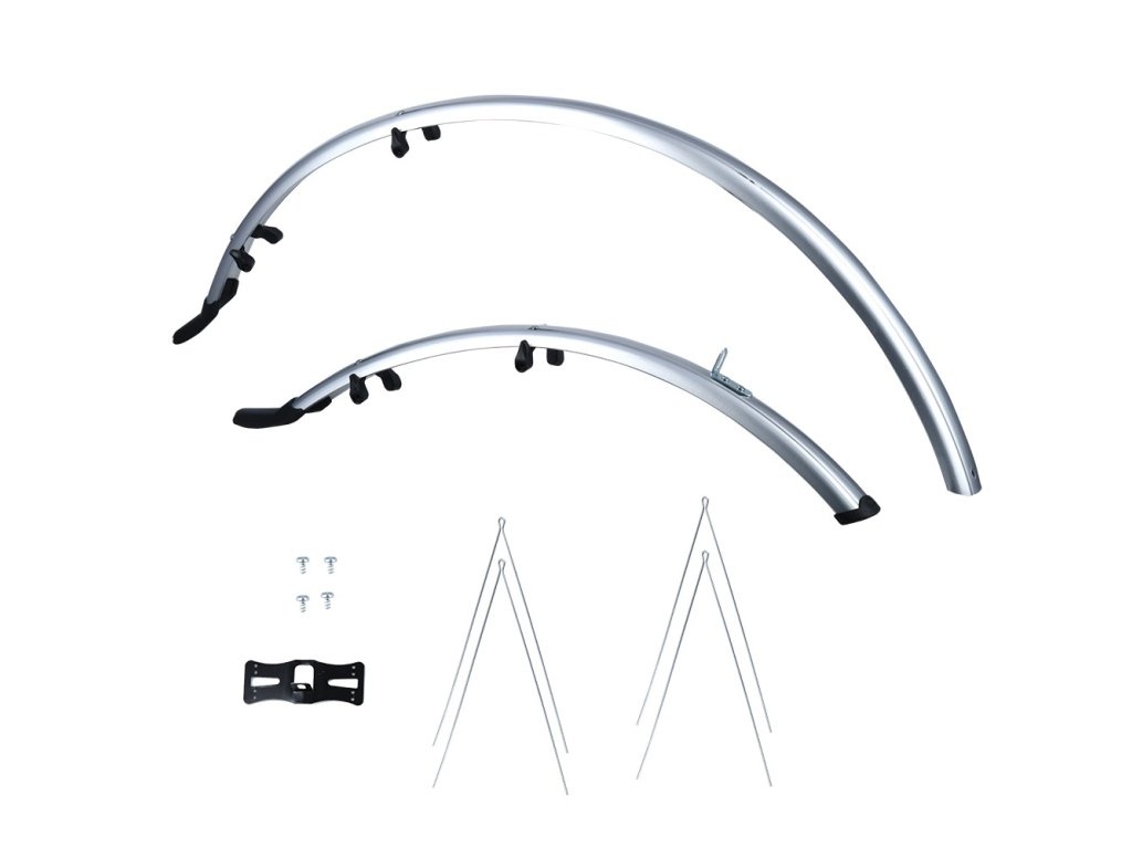 sada predných/zadných blatníkov pre použitie na kolesách/plášťoch 700C OXFORD silver so šírkou 41 mm vrátane kotviacich vzpier