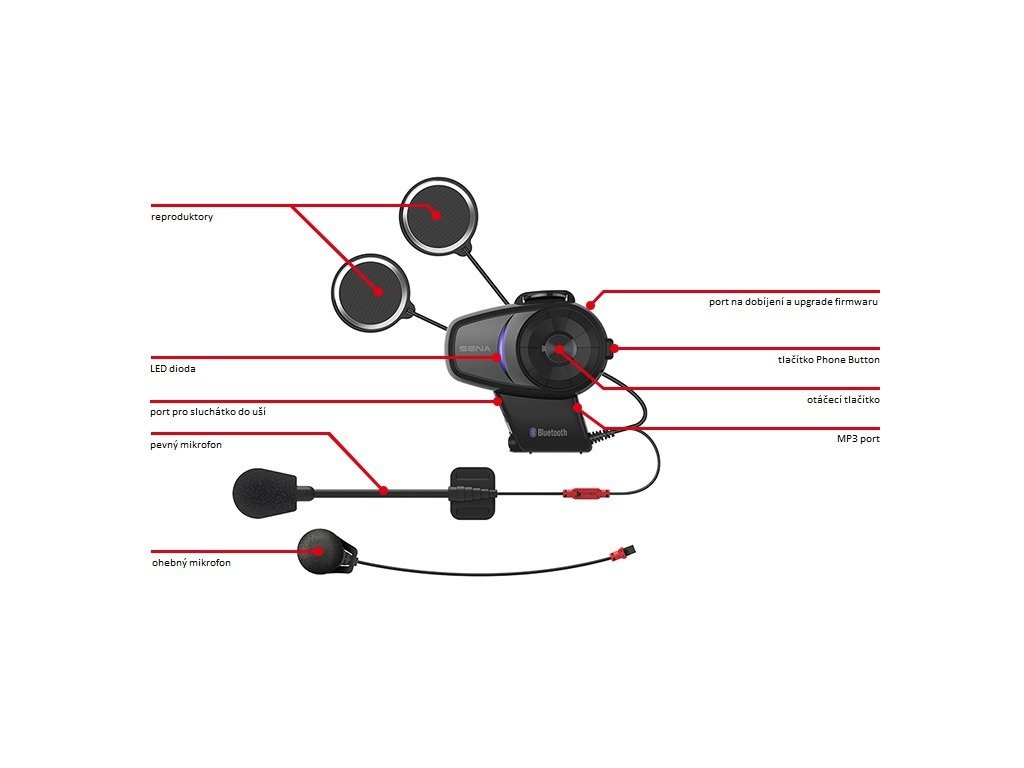 - Flexibilný mikrofón: na použitie v uzavretej prilbe