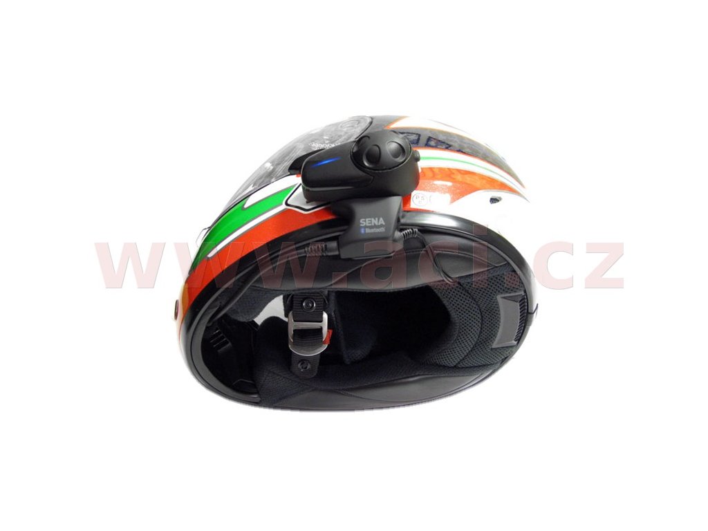 - Rozmery a hmotnosť: 84 mm x 57 mm x 39 mm, 59 g (náhlavná súprava) / 223 mm x 86 mm x 31 mm, 103 g (držiak na prilbu)