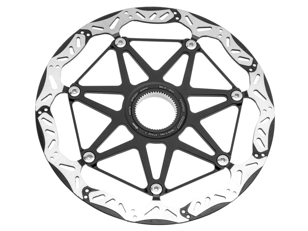 - Dvojdielna konštrukcia disku a náboja zaručuje výnimočnú tuhosť, ktorá zvyšuje stabilitu a presnosť brzdenia.