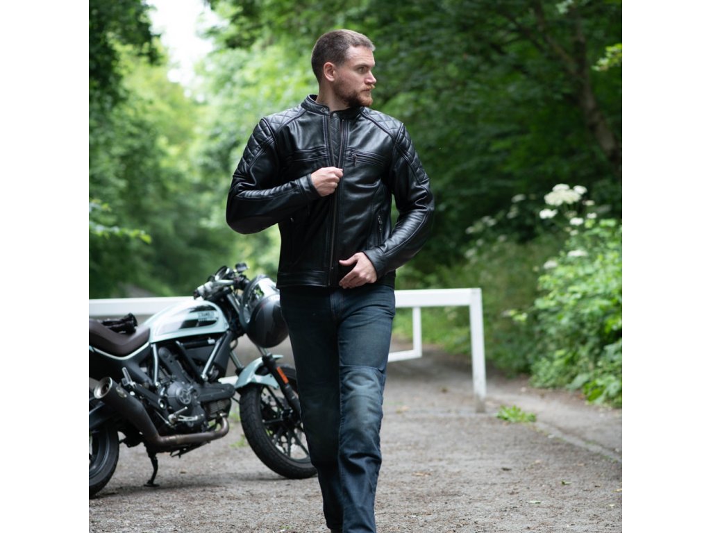 Bunda ROUTE 73 je štýlová bunda klasického strihu, ktorá je vyrobená z najjemnejšej hovädzej kože, čo zaručuje jej vysokú odolnosť. Klasické prešívanie v oblasti ramien je veľmi elegantné a bundu si obľúbite nielen na jazdu na motocykli. Nenápadné reflexné prvky zaručujú viditeľnosť bundy aj v tme, pričom nijako nenarušujú dizajn bundy. Vkusne riešené panely v zadnej časti ramien zaisťujú vysoký komfort pri pohybe a bunda neťahá cez chrbát. Bunda ROUTE 73 vyzerá skvele v kombinácii s džínsami a nielen s nimi.