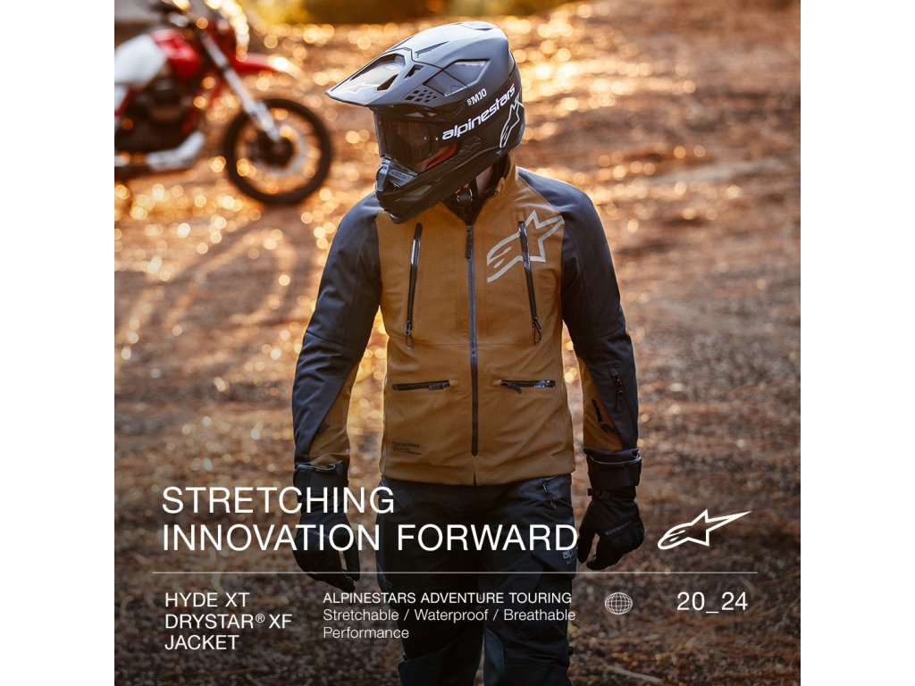 Bunda HYDE XT DRYSTAR®XF je určená na jazdu v teréne na motocykli, štvorkolke alebo vozidle side-by-side, a preto patrí do segmentu vybavenia pre duálny šport a dobrodružnú turistiku. Vonkajší plášť tvorí extrémne ľahký jednovrstvový nepremokavý materiál so štvorsmernou strečovou časťou so zosilnením pomocou panelov z nylonu odolného proti oderu. Jednovrstvový plášť je vybavený laminovanou klimatickou membránou DRYSTAR®XF, ktorá je vďaka technológii XF (extra flow) nepremokavá a vysoko priedušná. Klimatická membrána DRYSTAR®XF dokáže zabezpečiť rýchlejšie odparovanie vodných pár, čím sa medzi telom a vnútornými vrstvami odevu hromadí menej vlhkosti. Súčasťou prispôsobivosti bundy rôznym klimatickým podmienkam sú dlhé zipsy systému priameho vetrania v prednej a zadnej časti trupu, ktoré spolu s vetracími zipsami na predlaktiach zabezpečujú vysoký stupeň vetrania a priedušnosti. Bunda HYDE XT obsahuje vnútornú odnímateľnú sieťovanú vložku s rukávmi, ktorá je vybavená odnímateľnými chráničmi lakťov a ramien NUCLEON FLEX PLUS stupňa 1. Vnútornú sieťovanú vložku možno vylepšiť zakúpením chráničov NUCLEON FLEX PRO s ochranou stupňa 2. Bundu možno zároveň kombinovať s airbagovými vestami TECH-AIR®5, TECH-AIR®3 a TECH-AIR®OFFROAD. Vďaka týmto vlastnostiam je bunda veľmi univerzálna na použitie v teréne, ale aj na bežné každodenné dochádzanie do práce v rámci mesta a prispôsobuje sa extrémnym poveternostným podmienkam.
