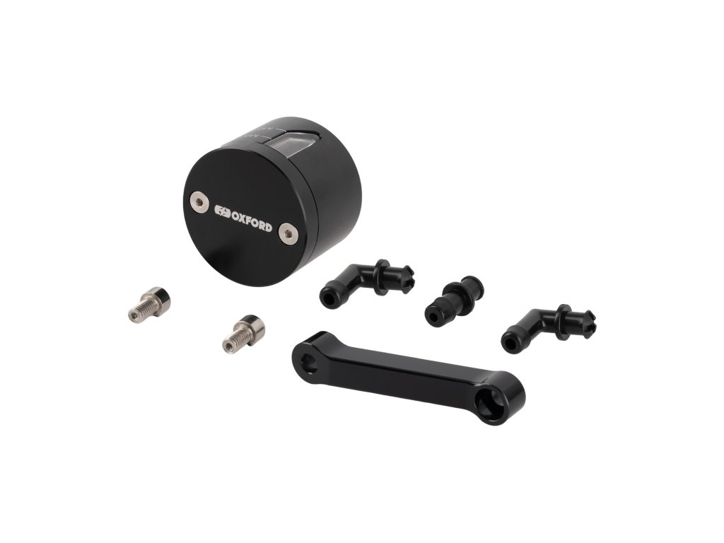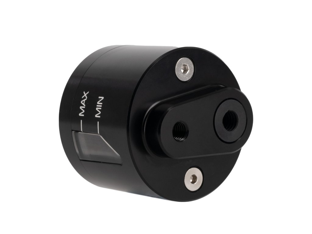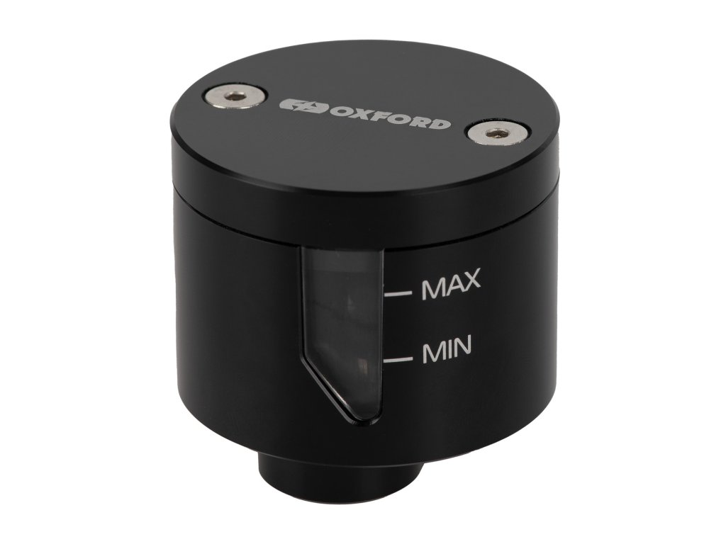 Univerzálna predná brzdová banka určená pre pretekárske a športové motocykle. Puzdro z CNC obrábanej hliníkovej zliatiny s čiernym eloxovaným povrchom, doplnené priehľadnými priezormi na meranie hladiny brzdovej kvapaliny na oboch stranách banky. Tesnenie uzáveru expanznej banky poskytuje priestor pre brzdovú kvapalinu v prípade, že sa prehreje a rozšíri vo vnútri brzdového systému.