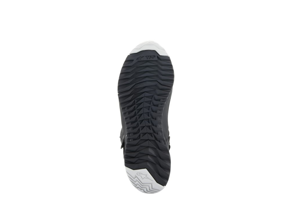 - Odolná, ľahká a flexibilná podrážka s hrubším dezénom, identická s modelom CR-X, má flexibilný mostík TPF (Transversal Protection Frame) a vnútorné vystuženie. Poskytuje oporu a ochranu chodidla počas jazdy v kombinácii s flexibilitou, vďaka ktorej sa v topánke pohodlne chodí.