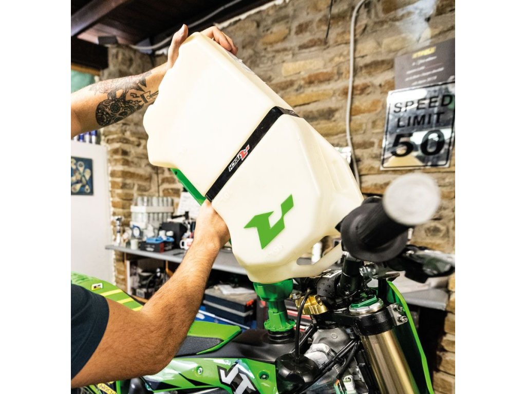 - kanister je špeciálne navrhnutý tak, aby sa dal počas prepravy ľahko ukotviť pomocou upínacích popruhov alebo vložením do stojana RTECH R15 MX