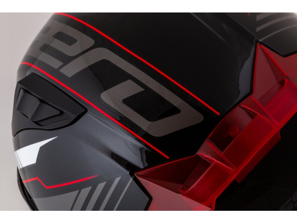 Prilba Aero je integrálna prilba s plastovou škrupinou a aerodynamickým spojlerom, vďaka ktorému prilba vyčnieva z davu.
