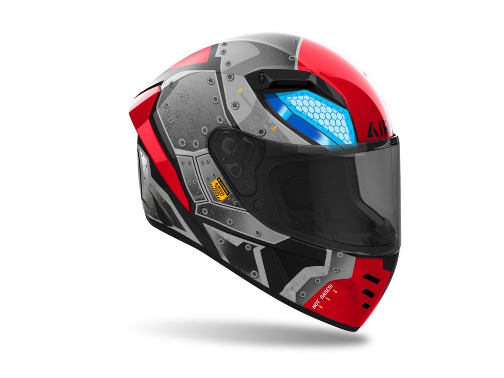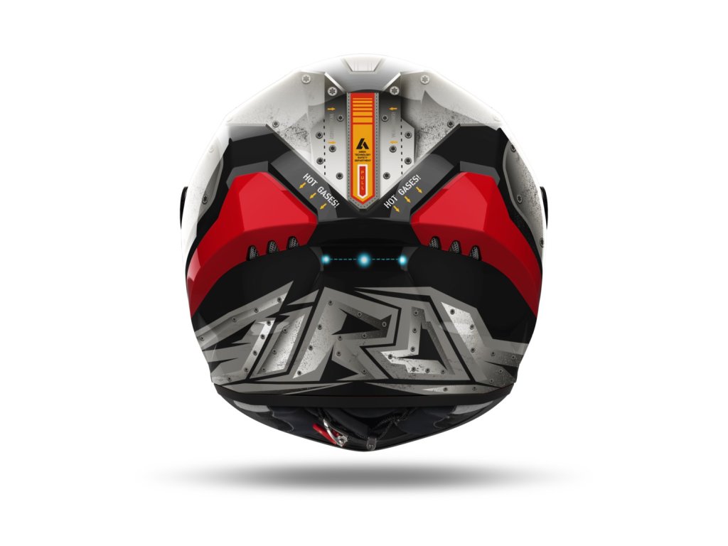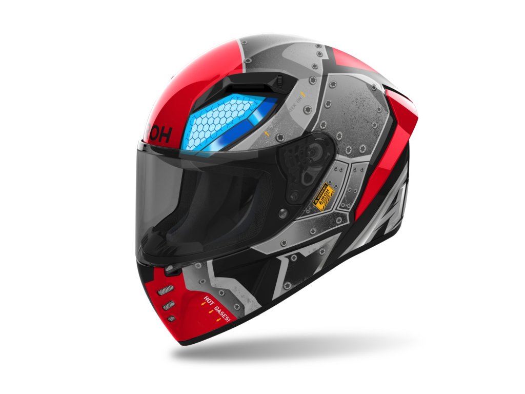 - Vnútorný priestor z tkaniny s 3D štruktúrou, ktorá znižuje silu prenášanú na hlavu pri náraze (ASN: Airoh Sliding Net)
