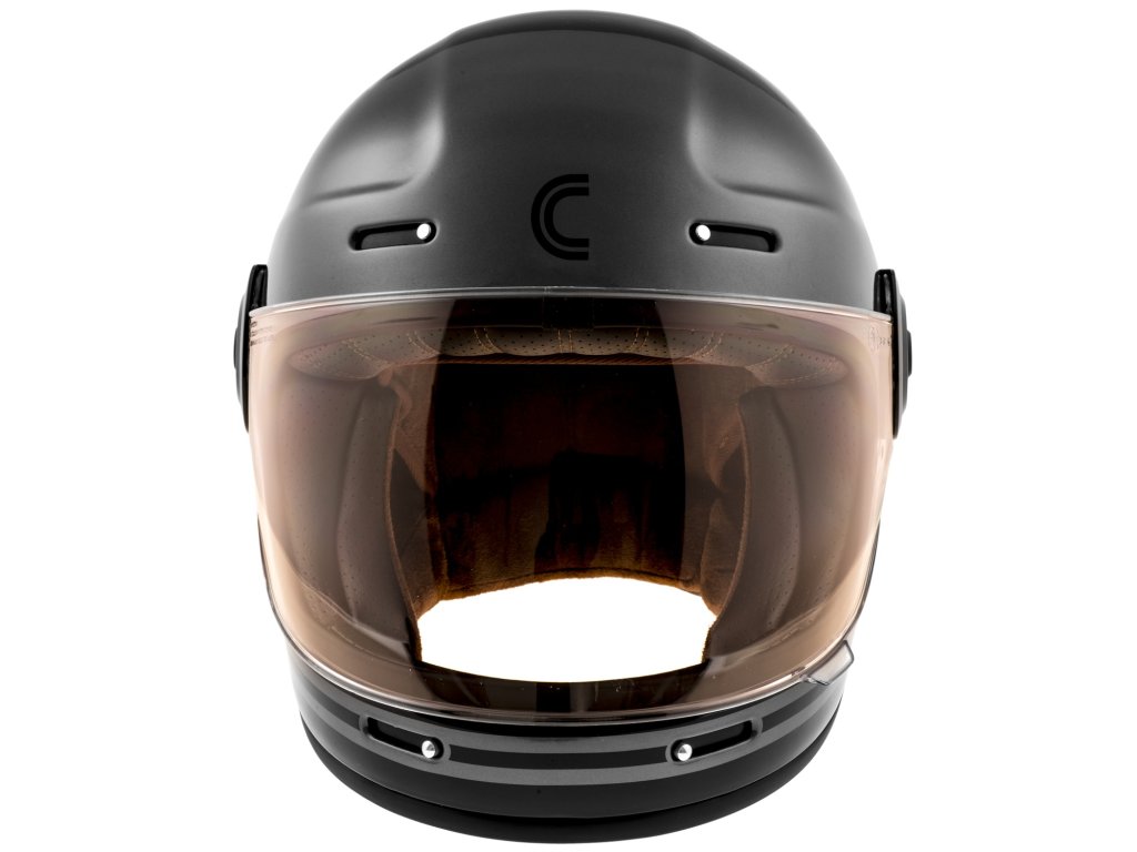 Prilba Fibre je integrálna prilba so sklolaminátovou škrupinou, bezpečnostnými štandardmi moderných prilieb a vzhľadom zameraným na používateľov vintage alebo neo retro a moderných klasických motocyklov.