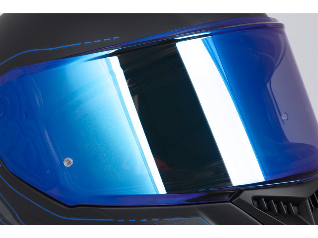 - Veľké plexisklové tienidlo so širokým zorným uhlom a väčšou výškou plexiskla zaisťuje dostatočnú viditeľnosť aj pri jazde vo väčšom predklone.