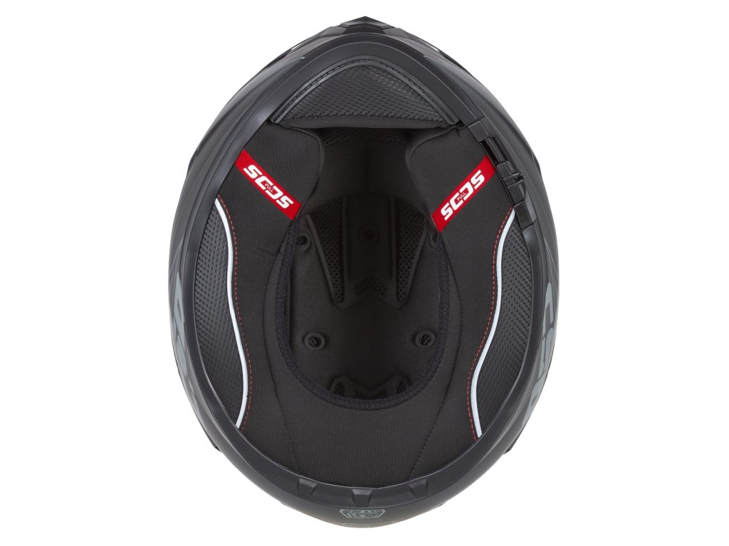 - Veľké plexisklové tienidlo so širokým zorným uhlom a väčšou výškou plexiskla zaisťuje dostatočnú viditeľnosť aj pri jazde vo väčšom predklone.