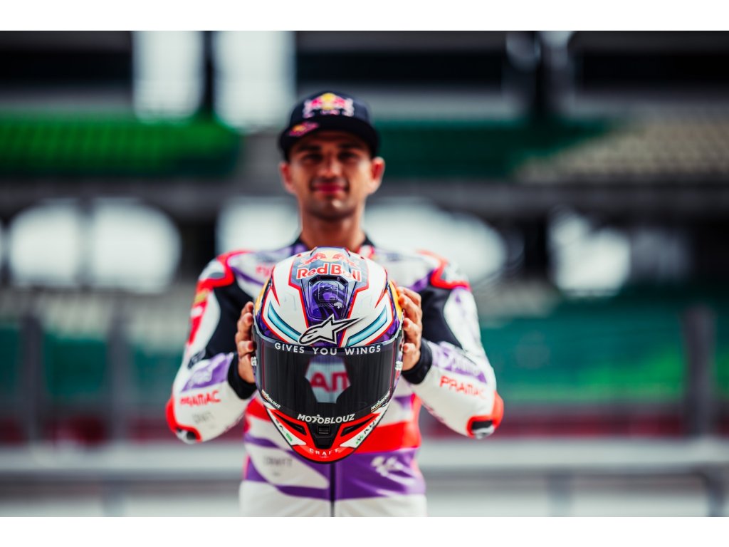 - Silueta pretekárskeho spojlera dokonale kopíruje aerodynamický hrb pretekárskej kombinézy ALPINESTARS.