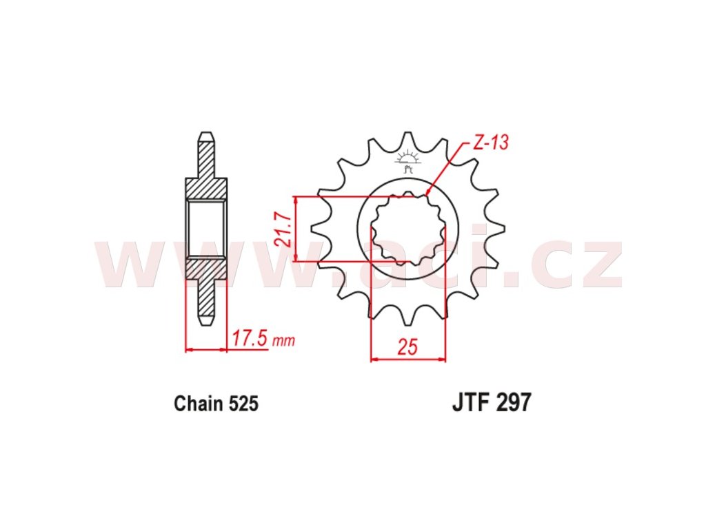 reťazové koleso s gumovým tlmením pre sekundárne reťaze typ 525 JT 15 zubov
