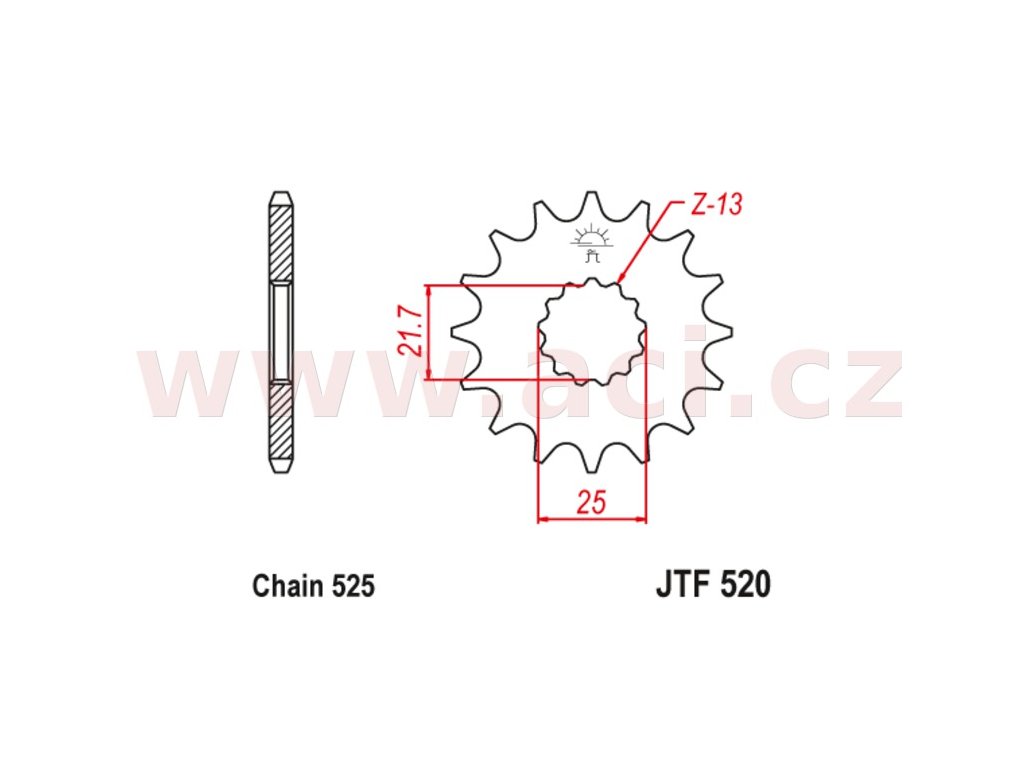 reťazové koleso s gumovým tlmením pre sekundárne reťaze typ 525 JT 15 zubov