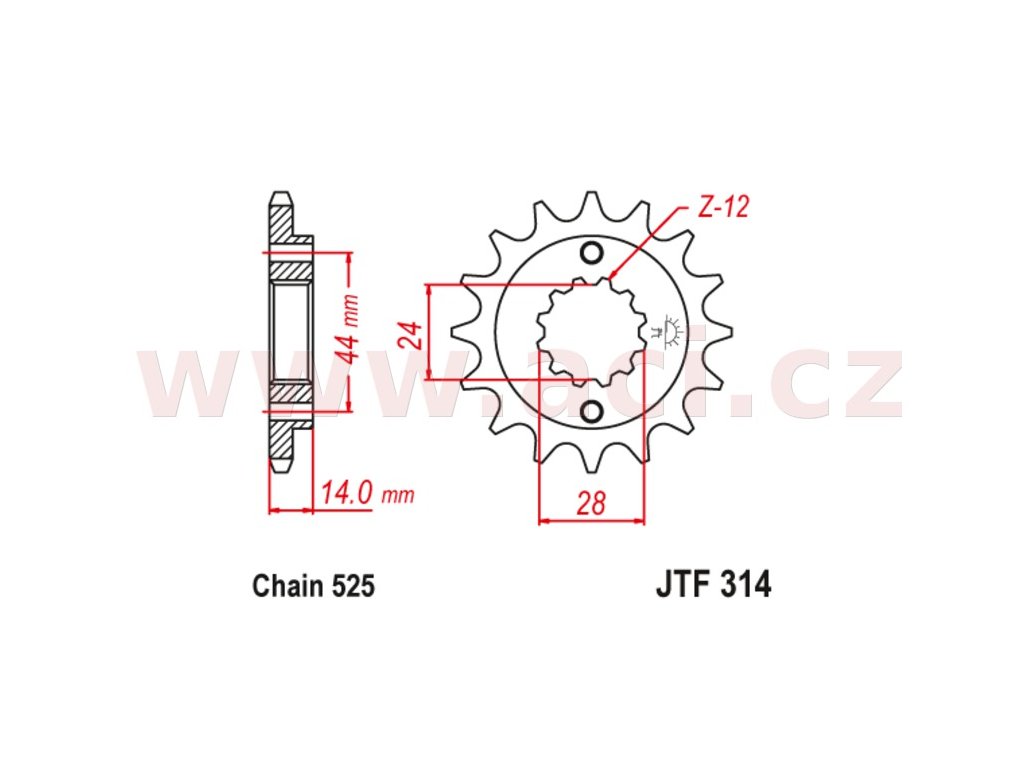 reťazové koleso s tlmiacou gumovou vrstvou pre sekundárne reťaze typ 525 JT 16 zubov