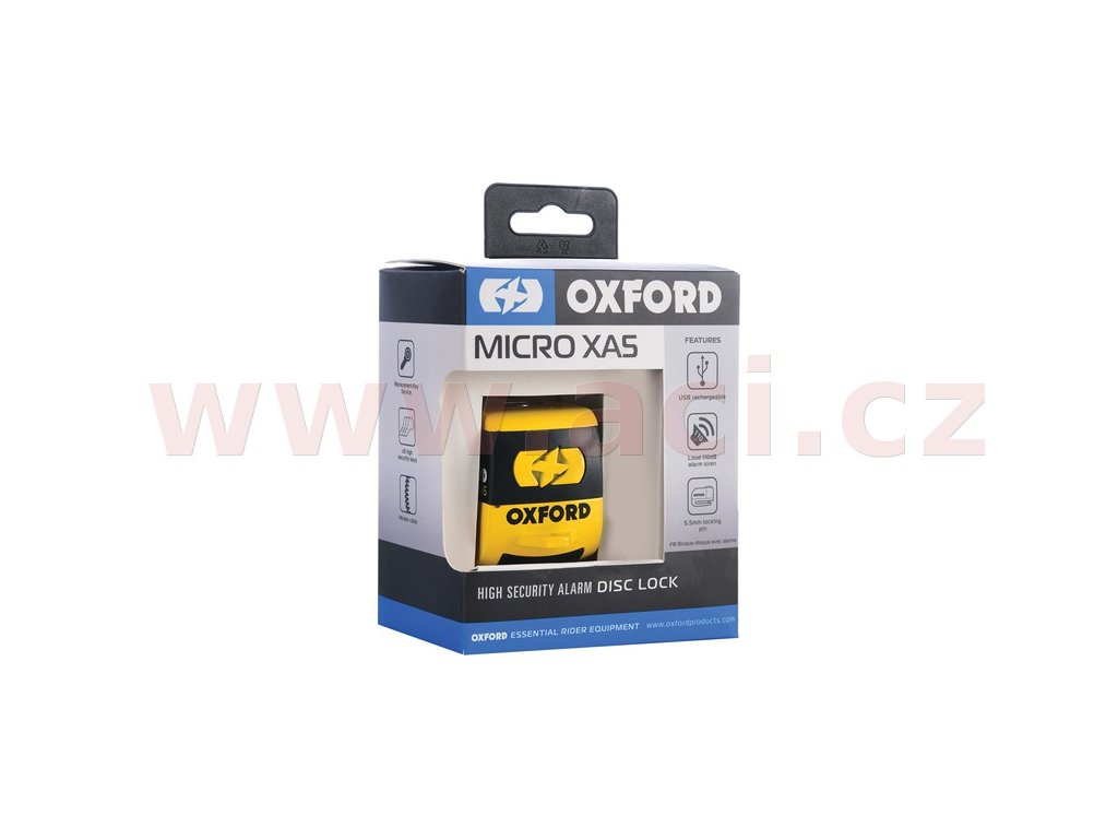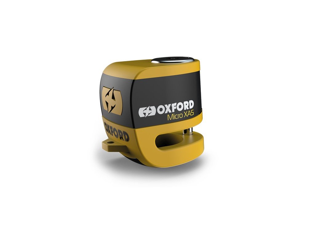 zámok kotúčovej brzdy Micro XA5 OXFORD integrovaný alarm žlto-čierny priemer kolíka 5 5 mm