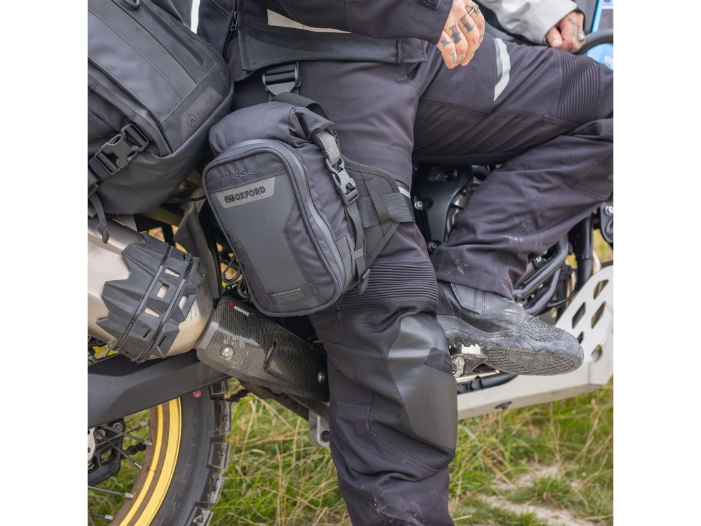 Stehenní kapsa Atlas L-2 je ideální doplněk pro cestování. Hlavní kapsa má kapacitu 1,5 litru a menší přední kapsa 0,5 litru. Brašna je voděodolná a lze připojit k systému zavazadel ATLAS.