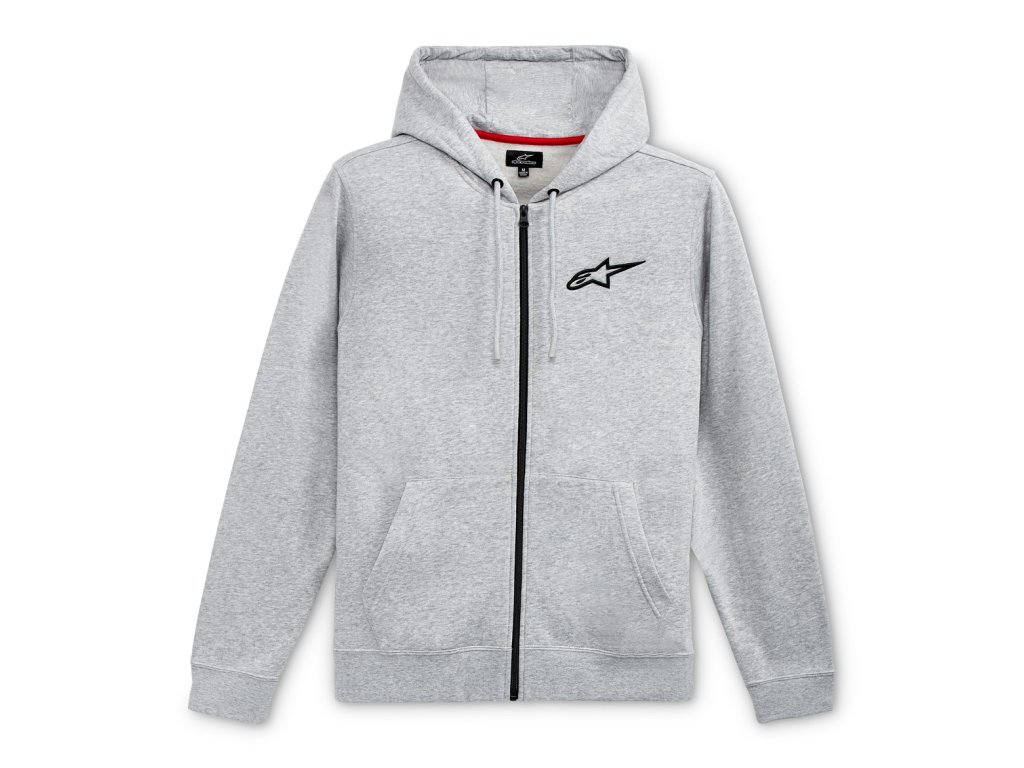 - Mikina s kapucňou, pozdĺžnym zipsom a dvoma vonkajšími vreckami na úrovni pása.
