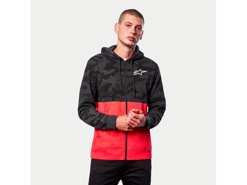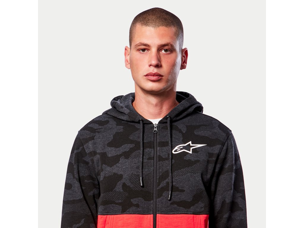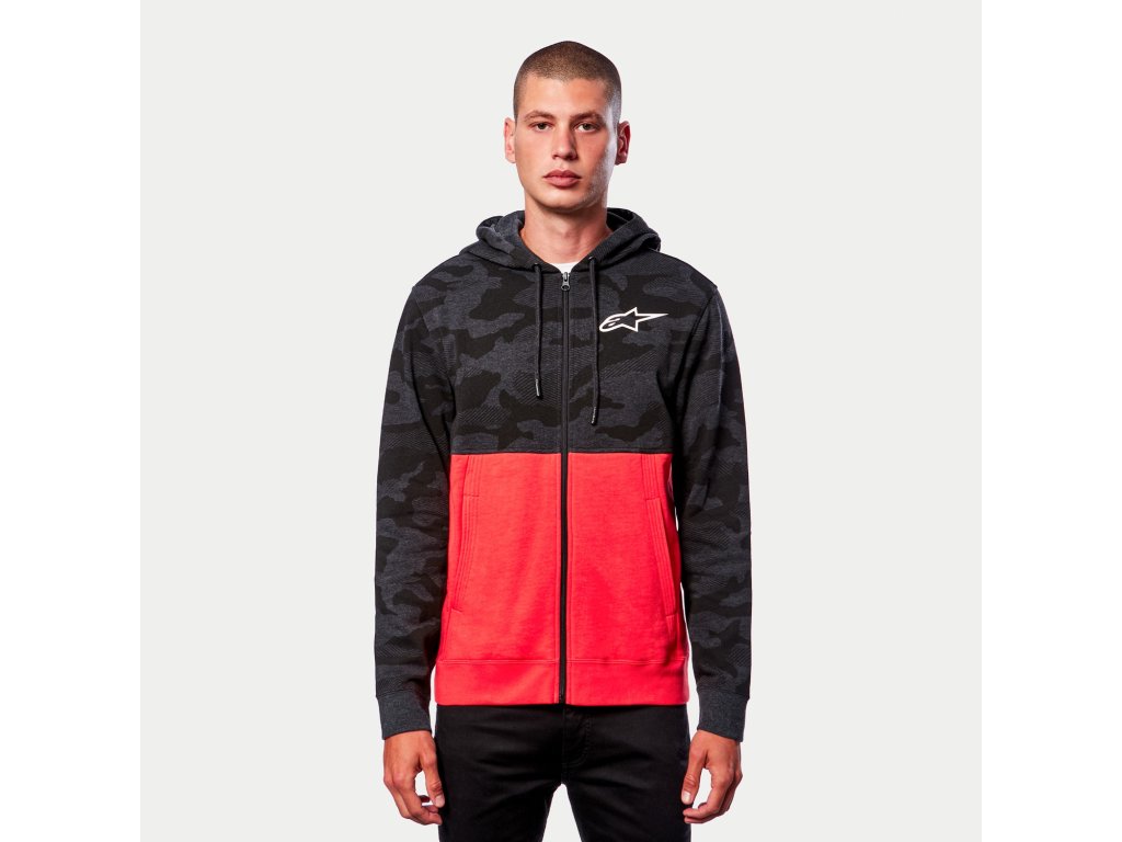 cAMO BLOCK HOODIE ALPINESTARS šedá kamufláž/červená fluo