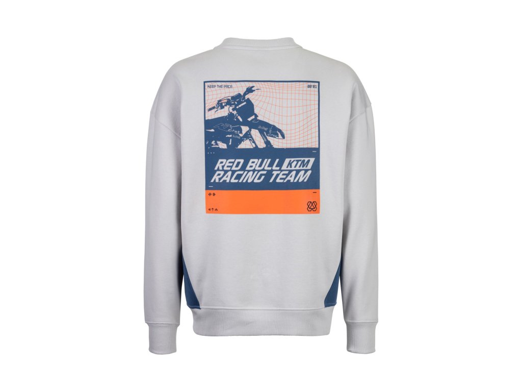 Voľnočasová mikina z oficiálnej kolekcie KTM Red Bull Racing DUSK. Svetlá mikina s jedinečnou potlačou na chrbte. Logo tímu a farby.