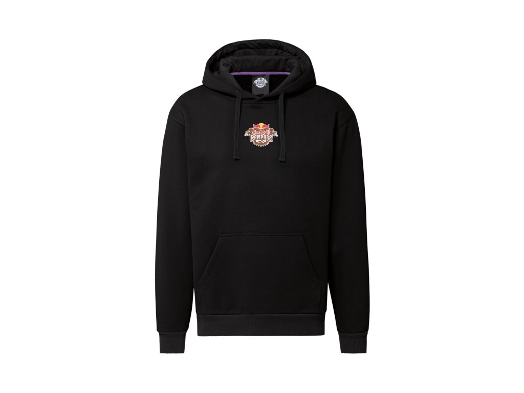 pohodlná volnočasová mikina s kapucí Red Bull Rampage s velkým potiskem na zádech a menším potiskem na hrudi