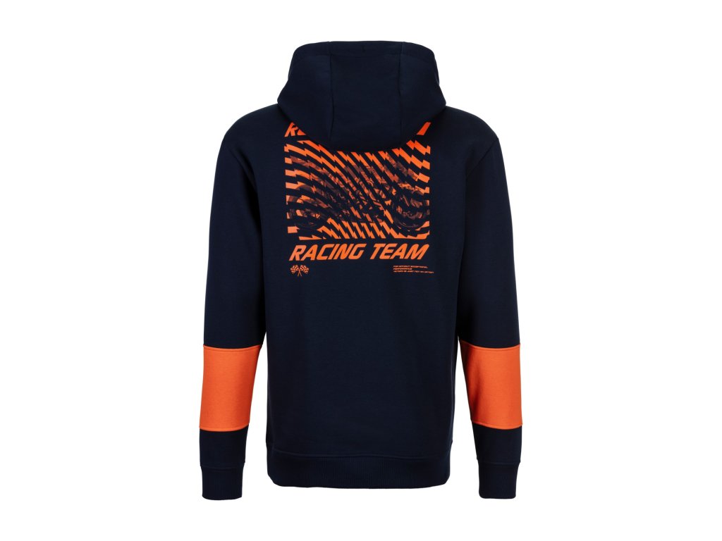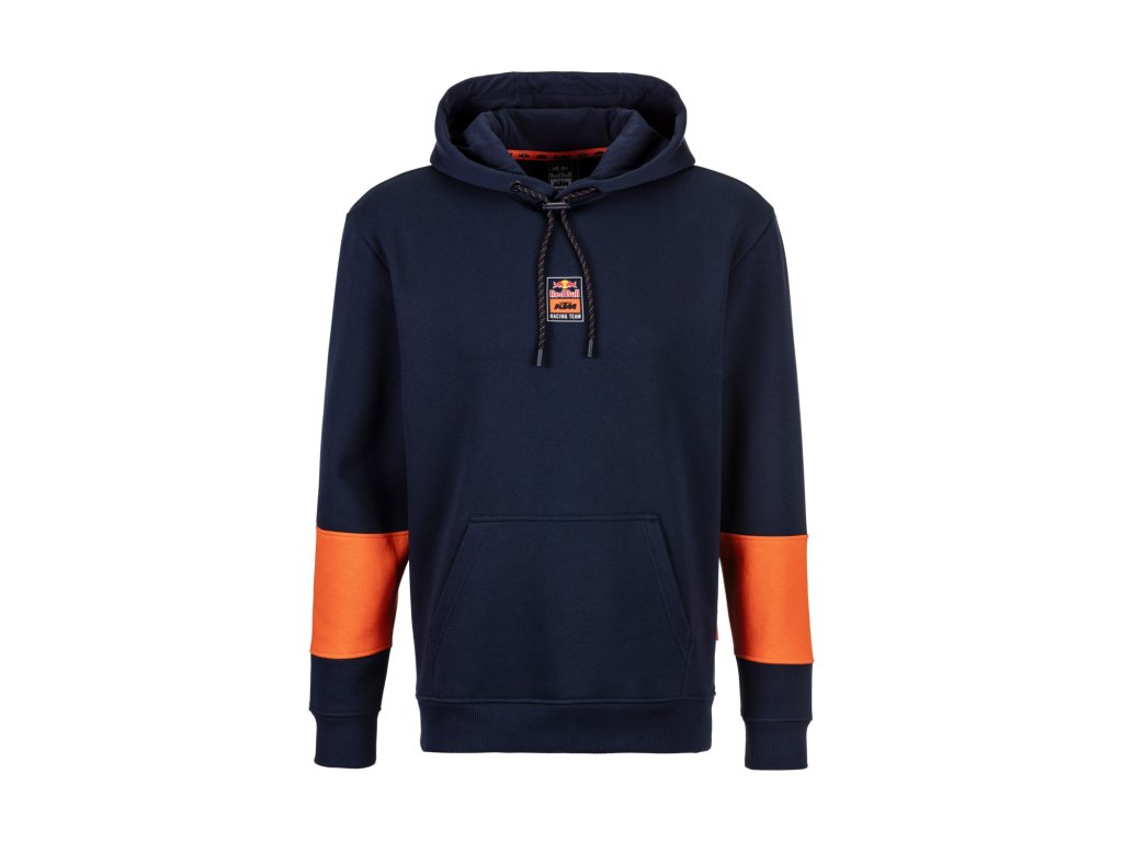 Voľnočasová mikina z oficiálnej kolekcie KTM Red Bull Racing. Tmavomodrá mikina s jedinečnou potlačou na zadnej strane. Logo tímu a farby.