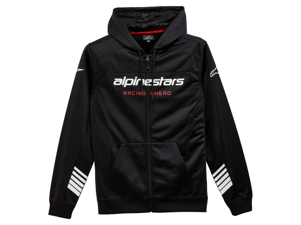 - Mikina s kapucňou, pozdĺžnym zipsom a dvoma vonkajšími vreckami na úrovni pása.