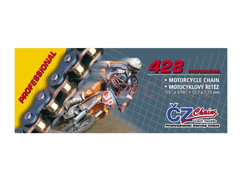reťaz 428MX ČZ zlatá 116 článkov vrátane rozpojovacej spojky CLIP