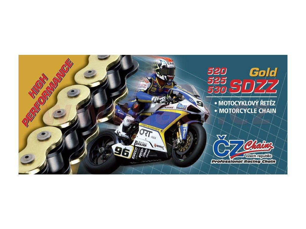 reťaz 520SDZZ ČZ farba zlatá 102 článkov vrátane nitovej spojky RIVET