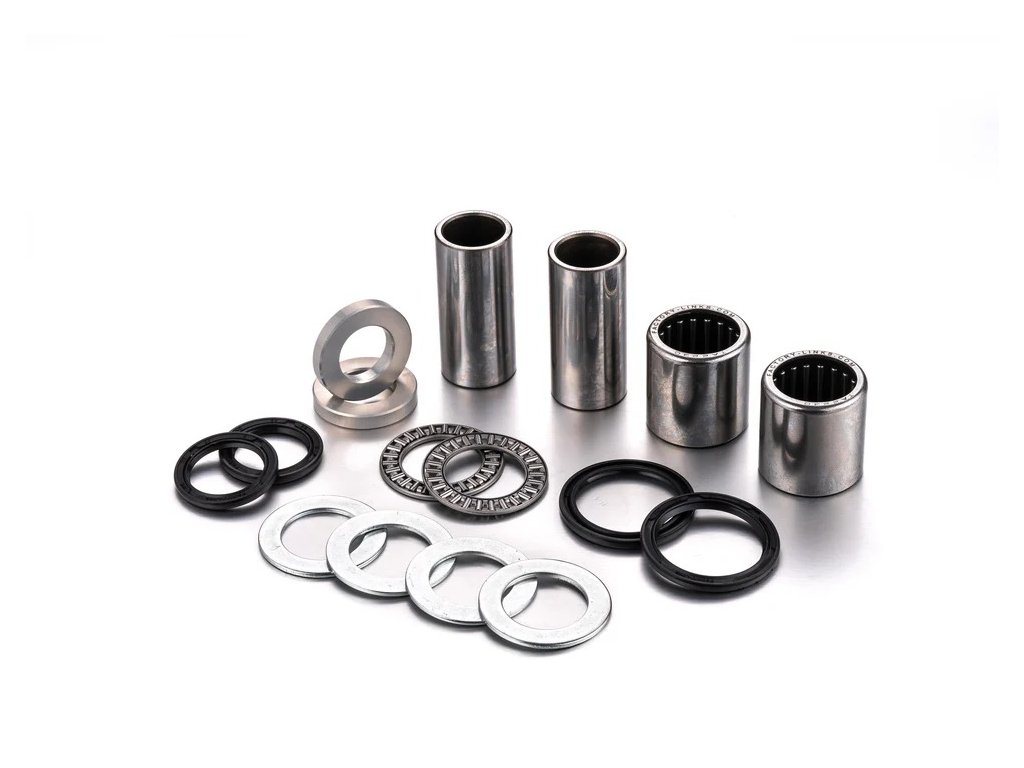 Sady FACTORY LINKS obsahují všechny prvky potřebné pro kompletní servis kyvné vidlice. Factory Links jehlová ložiska, podložky, čepy a simerinky, jsou vyráběny speciálně tak, aby splňovaly požadavky na OEM kvalitu, pokud jde o materiály a rozměrové tolerance, tvrdosti a drsnosti povrchu. Díky tomu se váš podvozek vrátí do původního stavu definovaného výrobcem.