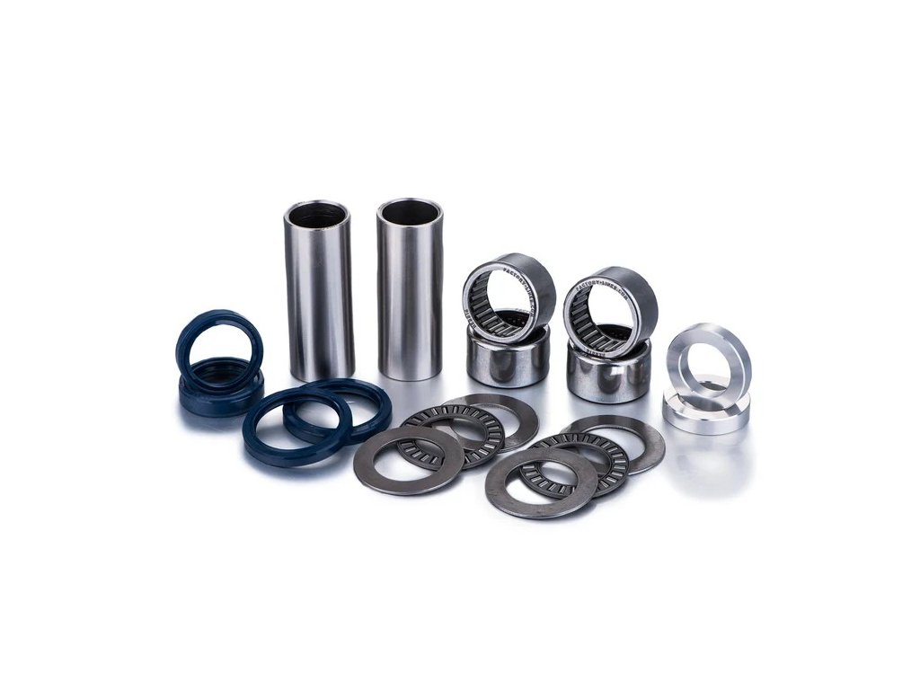 Sady FACTORY LINKS obsahují všechny prvky potřebné pro kompletní servis kyvné vidlice. Factory Links jehlová ložiska, podložky, čepy a simerinky, jsou vyráběny speciálně tak, aby splňovaly požadavky na OEM kvalitu, pokud jde o materiály a rozměrové tolerance, tvrdosti a drsnosti povrchu. Díky tomu se váš podvozek vrátí do původního stavu definovaného výrobcem.
