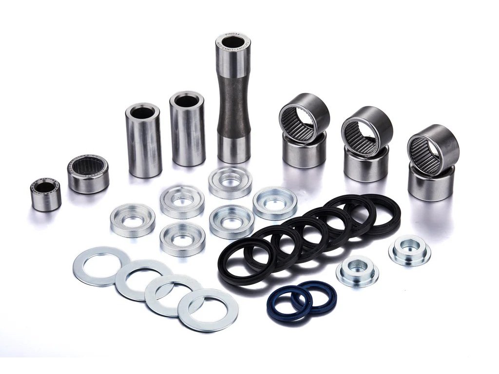 Sady FACTORY LINKS obsahují všechny prvky potřebné pro kompletní servis přepákování kyvné vidlice. Factory Links jehlová ložiska, podložky, čepy a simeringy, jsou vyráběny speciálně tak, aby splňovaly požadavky na OEM kvalitu, pokud jde o materiály a rozměrové tolerance, tvrdosti a drsnosti povrchu. Díky tomu se váš podvozek vrátí do původního stavu definovaného výrobcem.