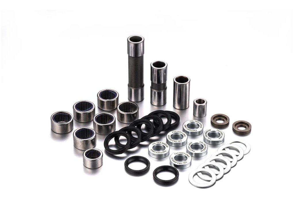 - Sady Factory Links vždy obsahují konkrétní komponenty (čepy, ložiska, pouzdra, příložky, podložky, rozpěrky, simeringy, kloubová ložiska, jehlová ložiska) pro konkrétní motocykly (detaily v zařazení)