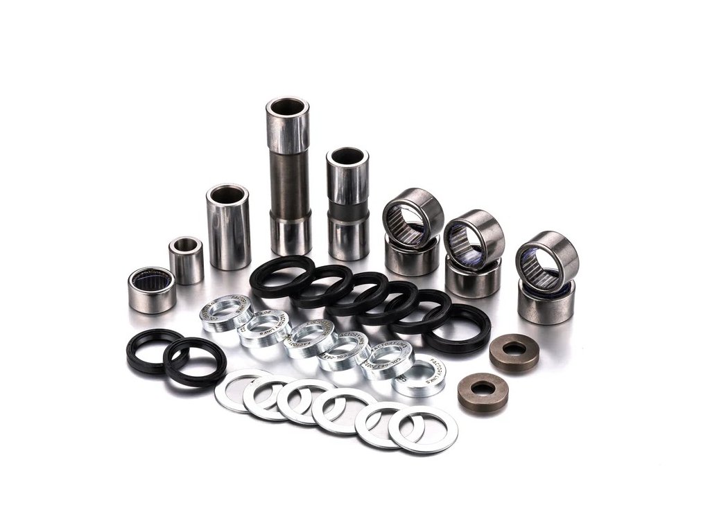 - Sady Factory Links vždy obsahují konkrétní komponenty (čepy, ložiska, pouzdra, příložky, podložky, rozpěrky, simeringy, kloubová ložiska, jehlová ložiska) pro konkrétní motocykly (detaily v zařazení)