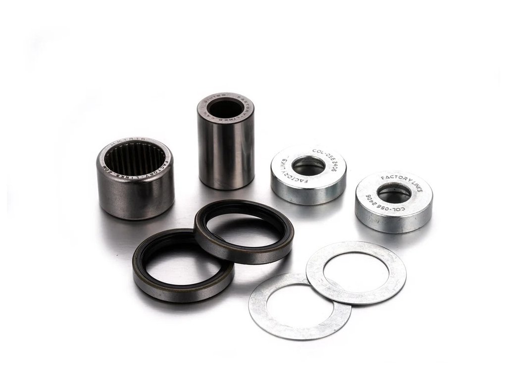 Sady FACTORY LINKS obsahují všechny prvky potřebné pro kompletní servis zadního tlumiče. Factory Links jehlová ložiska, podložky, čepy a simeringy, jsou vyráběny speciálně tak, aby splňovaly požadavky na OEM kvalitu, pokud jde o materiály a rozměrové tolerance, tvrdosti a drsnosti povrchu. Díky tomu se váš podvozek vrátí do původního stavu definovaného výrobcem.