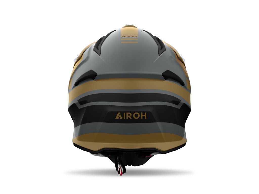- Špeciálna 3D štruktúra tkaniny a 2 steny, ktoré sa v prípade nárazu pohybujú smerom k sebe (ASN Airoh Sliding Net: jednoduchší brat AEFR Airoh Emergency Fast Release).