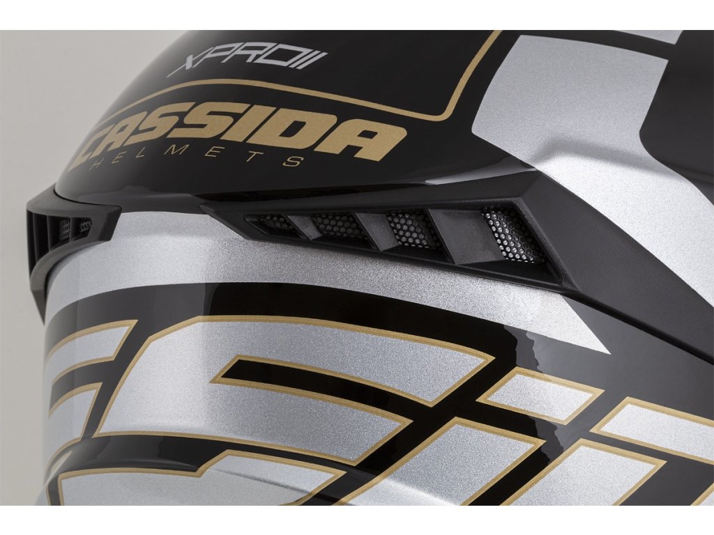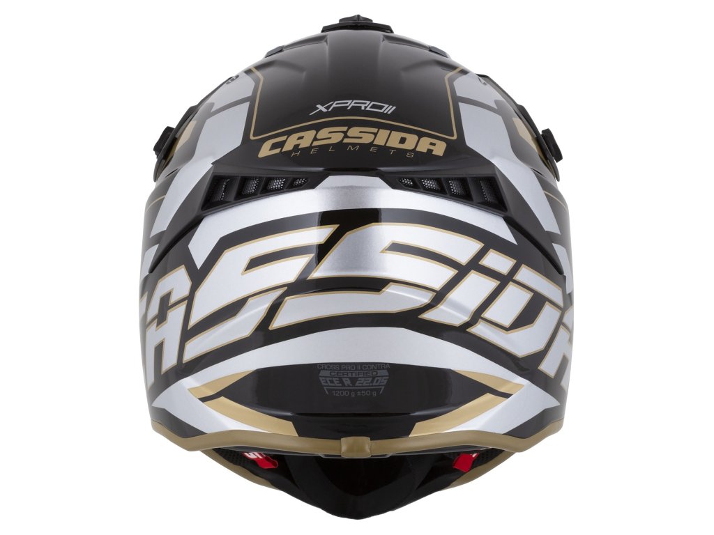 Prilba Cross Pro II je v súčasnosti najvyšším motokrosovým modelom od spoločnosti Cassidy v rade Contra graphic. Kolaminátová škrupina, nastaviteľný priezor s bočnou zliatinou a jednou stredovou plastovou skrutkou na nastavenie polohy a jemné sklopenie priezoru v prípade kontaktu s prekážkou. Interiér prilby je vybavený novým bezpečnostným otváracím systémom Cassida (Cassida SOS) s odnímateľnými lícnicami a potlačenou grafikou interiéru prilby ako prvý model v rade. Dobre umývateľný interiér prilby a systém vetrania brady je vybavený vymeniteľným uhlíkovým filtrom.