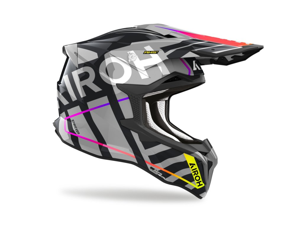 - 2 prekrývajúce sa škrupiny s rôznou hustotou matérie, ktoré sú pretkané silikónovými prvkami na rozptýlenie kinetickej energie pri náraze (AMS2: Airoh Multiaction Safety System).