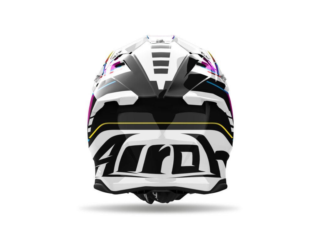 - Vnútorný priestor z tkaniny s 3D štruktúrou, ktorá znižuje silu prenášanú na hlavu pri náraze (ASN: Airoh Sliding Net).