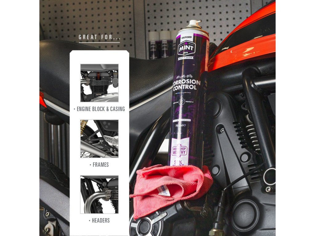 Přípravek Corrosion contro je navržen pro ochranu povrchů před stávající i novou korozí. Tento produkt se snadno nanáší a po použití vytvoří tenký film, který vytváří ochrannou bariéru proti vlhkosti, soli a dalším vlivům prostředí, které mohou způsobovat korozi. Vyznačuje se jemnou mátovou vůní.