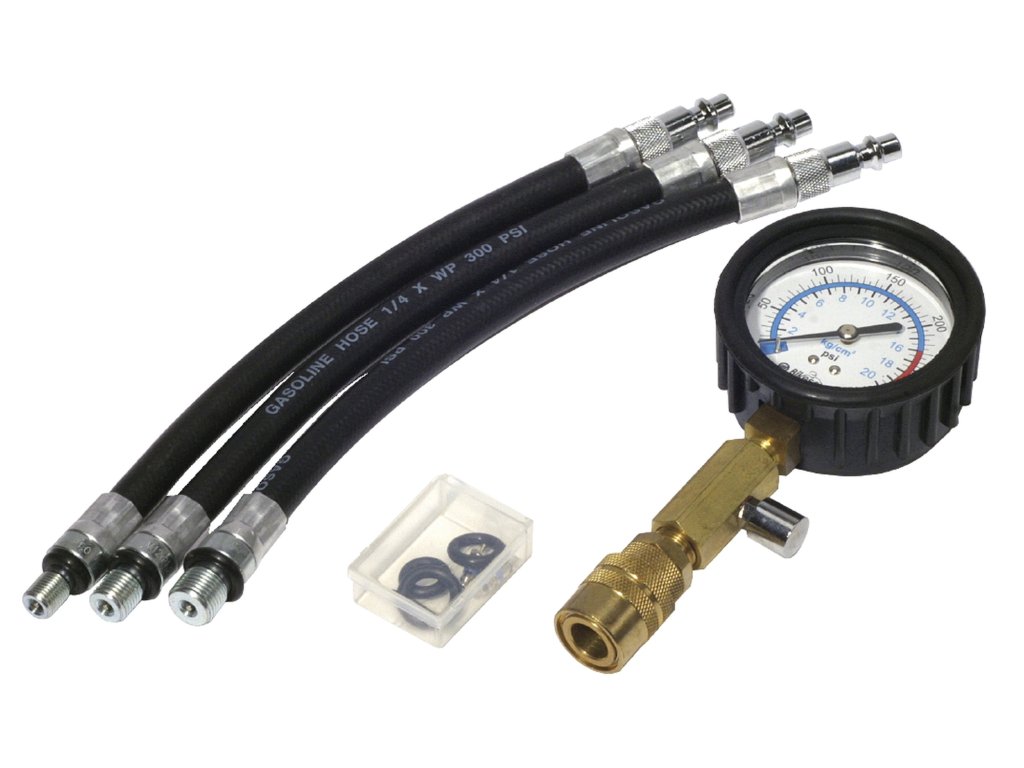 - sada obsahuje manometer s otočným regulačným ventilom a 3 hadice s koncovkami 16 mm / 18 mm / 21 mm