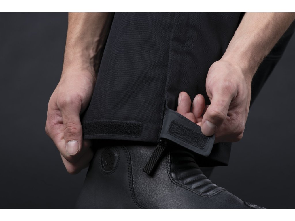 - Dômyselné zakončenie nohavíc s kompresiou a nastaviteľnými manžetami pre možnosť umiestnenia topánok cez alebo pod nohy.