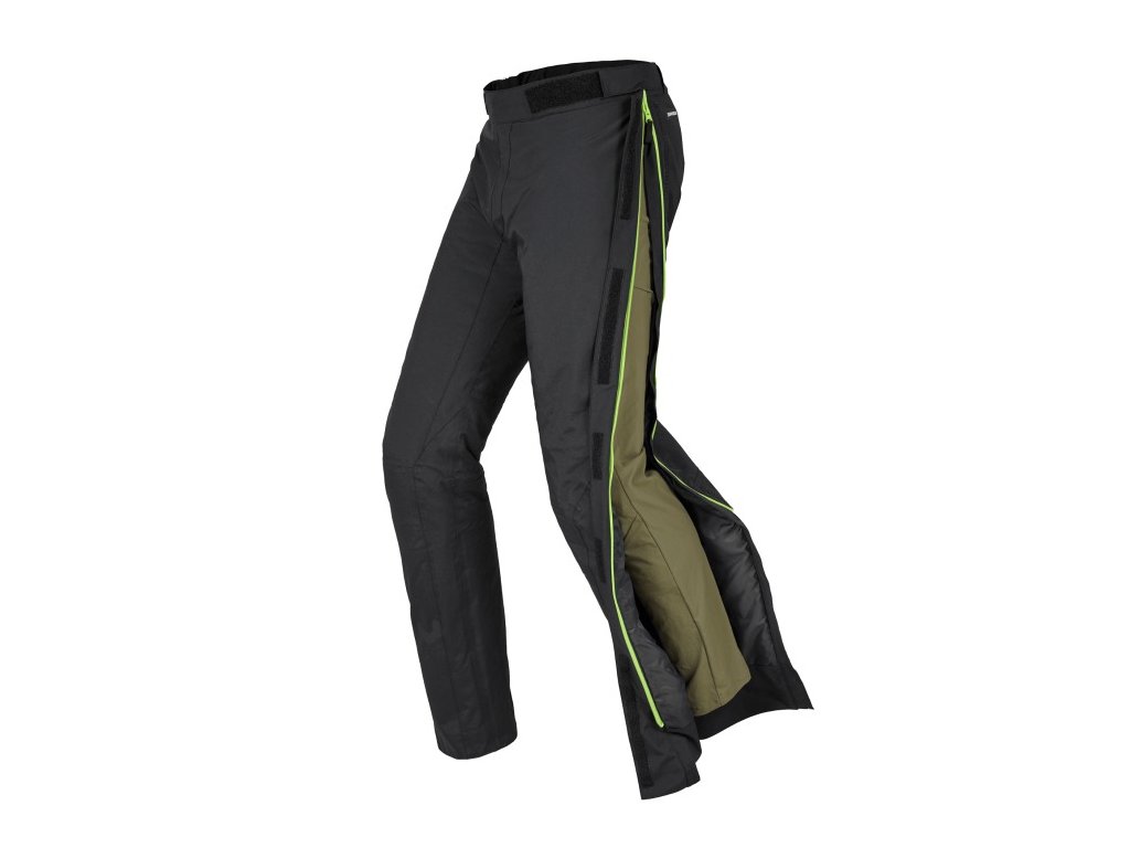 - Kombinéza s vonkajšou vrstvou z polyamidovej tkaniny s dvojcestnými zipsami po celej dĺžke nohavíc.