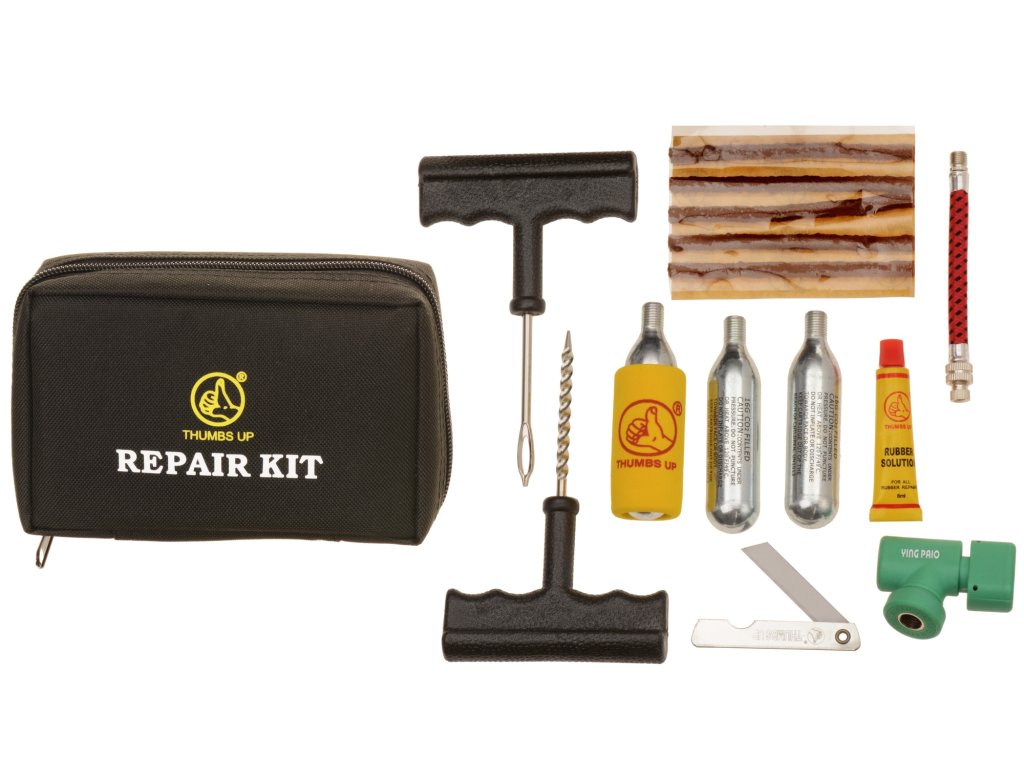 veľká opravárenská sada pre moto pneumatiky vrátane bômb THUMBS UP
