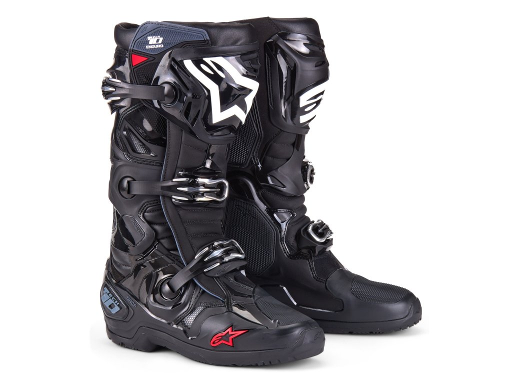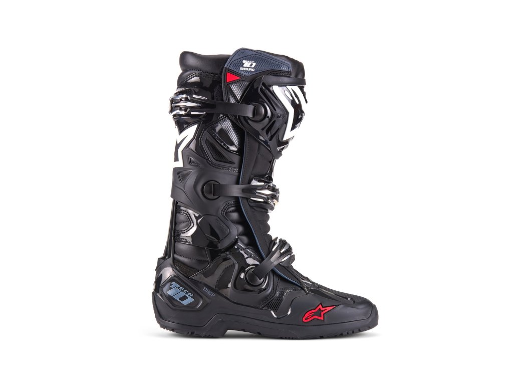 ALPINESTARS TECH 10 je špičkový model určený predovšetkým na motokrosovú jazdu. Vývojári v spoločnosti ALPINESTARS teraz nastavujú latku ešte vyššie a verzia TECH 10 ENDURO je vybavená úplne prepracovanou podrážkou, ktorá ponúka lepšiu súdržnosť a priľnavosť počas tvrdej enduro jazdy. Topánka má tiež prepracovanú vstupnú manžetu a ochranné prvky prispôsobené na jazdu vo voľnom teréne.