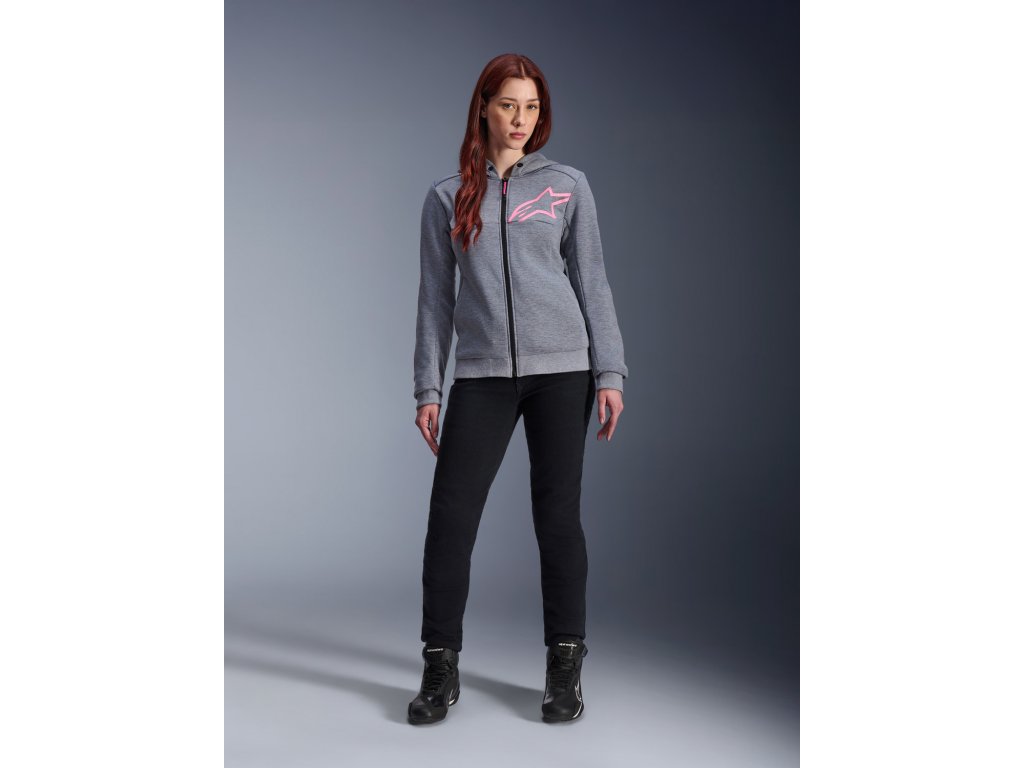 Bunda CHROME V2 SPORT HOODIE je navrhnutá pre mestskú premávku, tak aby poskytla perfektnú ochranu proti oderu. To je dosiahnuté vďaka podšívke z aramidových vlákien v oblasti ramien a lakťov. Bunda so vzhľadom voľnočasovej mikiny, ktorú je možné sebaisto nosiť aj mimo jazdy na motocykli. Súčasťou vnútorného usporiadania sú odnímateľné protektory lakťov a ramien radu NUCLEON FLEX PLUS, ktoré sú špičkou vo svojej triede.