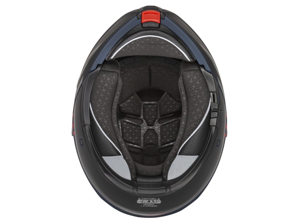 Prilba Modulo 2.1 je cestovný model výklopnej prilby so sklolaminátovou škrupinou a štandardmi prilby vyššej strednej triedy.