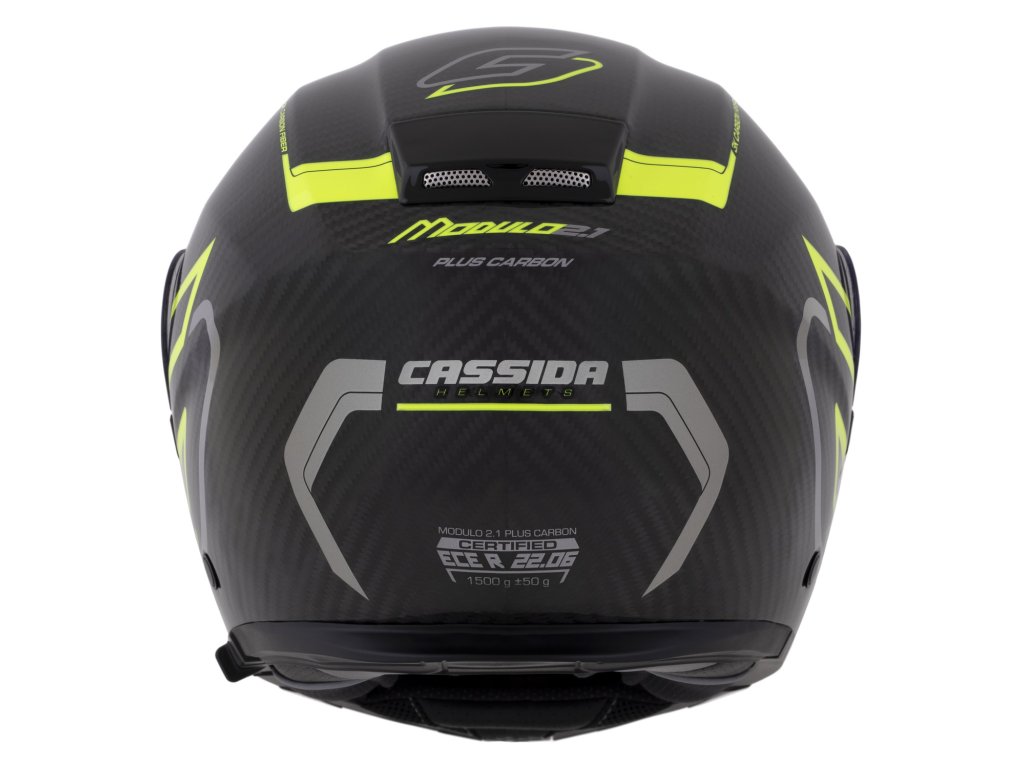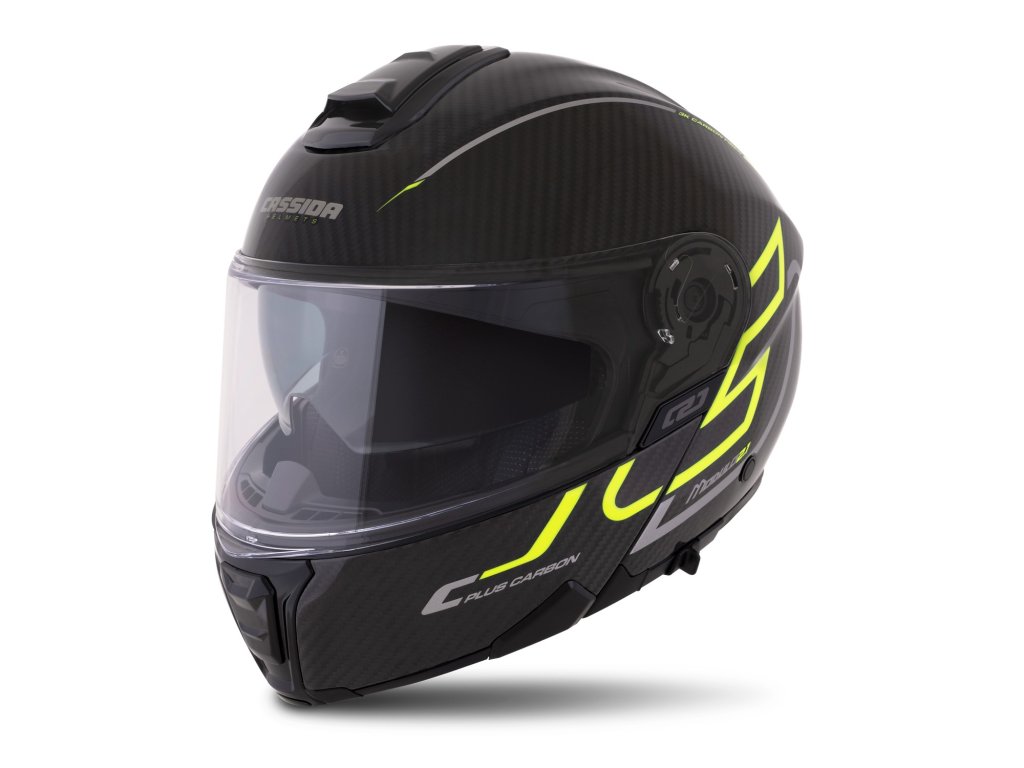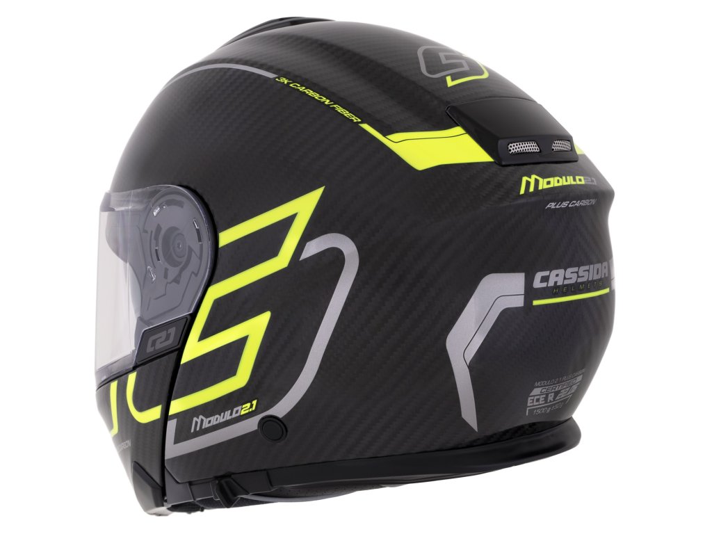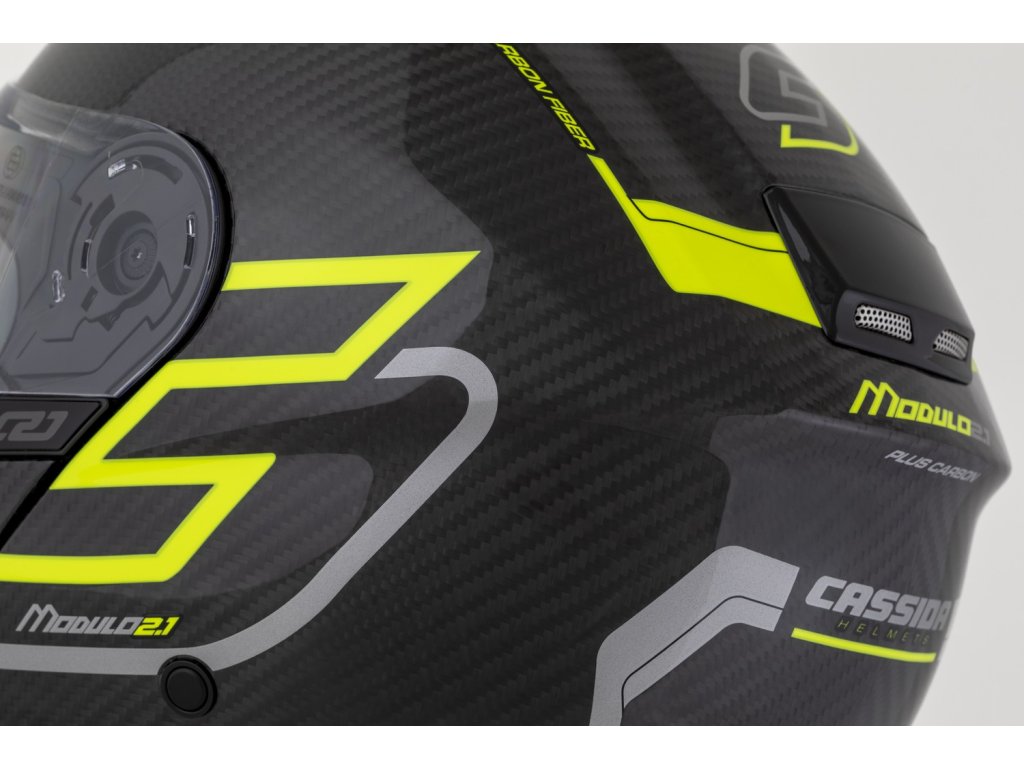 prilba Modulo 21 Plus Carbon CASSIDA carbon/žltá fluo/reflexná strieborná/čierne plexi s prípravou na Pinlock 2025